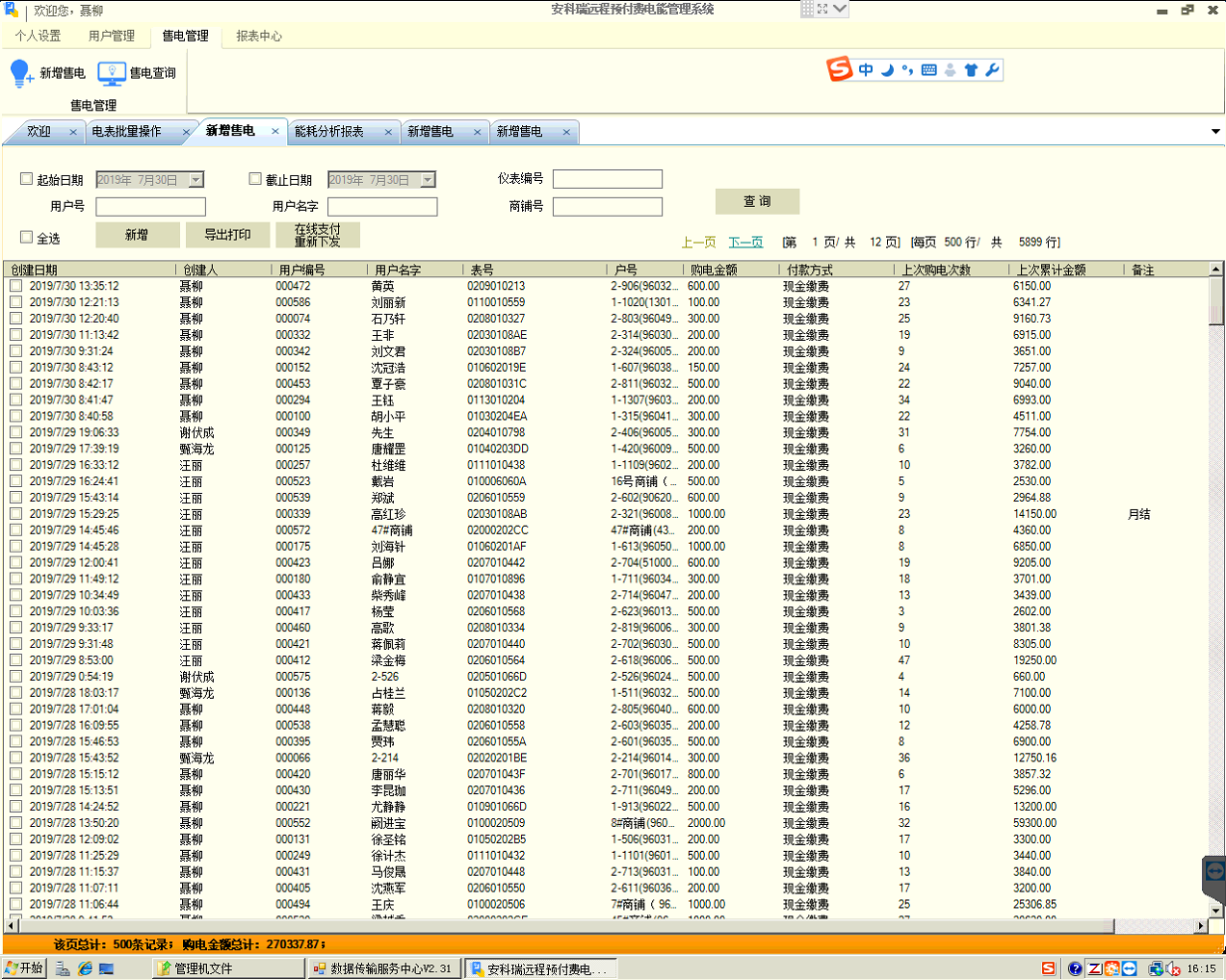 集中抄表服務(wù)程序常年運(yùn)行,不間斷定時(shí)對所有表進(jìn)行遠(yuǎn)程抄表;遠(yuǎn)程預(yù)付費(fèi)系統(tǒng)包含所有開戶、售電、遙控及報(bào)表功能;用戶查詢機(jī)系統(tǒng)用于商鋪查詢個(gè)人信息、充值和用電情況;另外還可配置手機(jī)端查詢網(wǎng)站,可用于商鋪用戶在手機(jī)網(wǎng)站終端上實(shí)時(shí)查詢個(gè)人信息、充值、遠(yuǎn)程控制及每日用電情況,如果條件滿足,還支持用戶使用支付寶銀聯(lián)等方式遠(yuǎn)程自助購電。