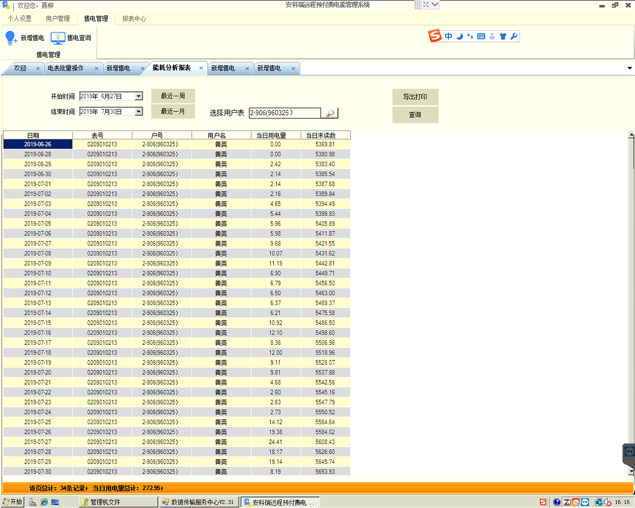 能耗分析及查詢:用戶和管理員都可查詢預(yù)付費(fèi)表或各類接入的計(jì)量儀表每天的用能狀況;