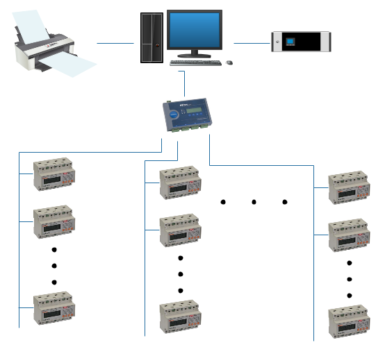 間隔設(shè)備層主要為:預(yù)付費(fèi)多功能電表。這些裝置分別對(duì)應(yīng)相應(yīng)的一次設(shè)備安裝在電氣柜內(nèi),這些裝置均采用RS485通訊接口,通過(guò)現(xiàn)場(chǎng)MODBUS總線組網(wǎng)通訊,實(shí)現(xiàn)數(shù)據(jù)現(xiàn)場(chǎng)采集。