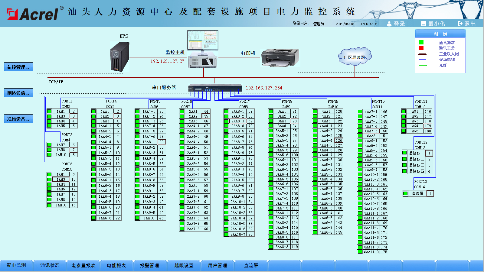站控管理層針對電力監(jiān)控系統(tǒng)的管理人員,是人機(jī)交互的直接窗口。在汕頭人力資源市場工程中主要指置于地下一層配電室的監(jiān)控主機(jī)。